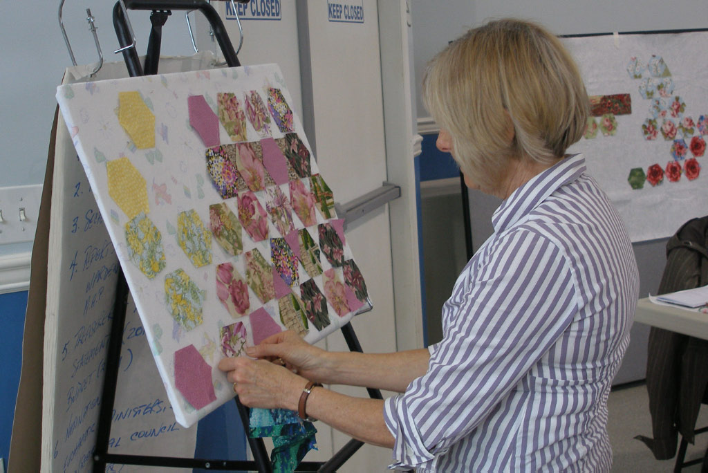 We had great fun choosing fabrics, cutting hexagons, and cutting more hexagons