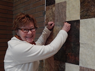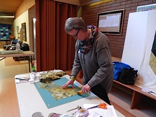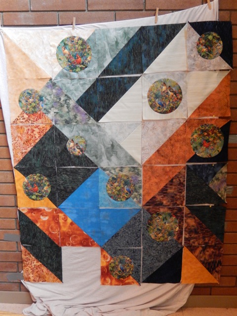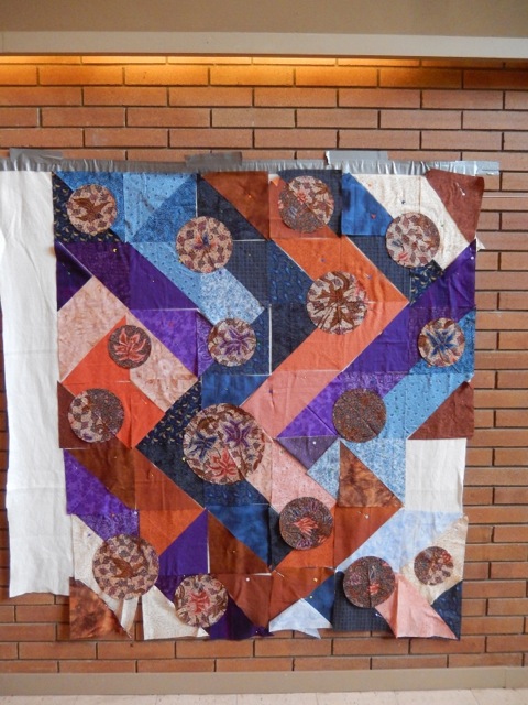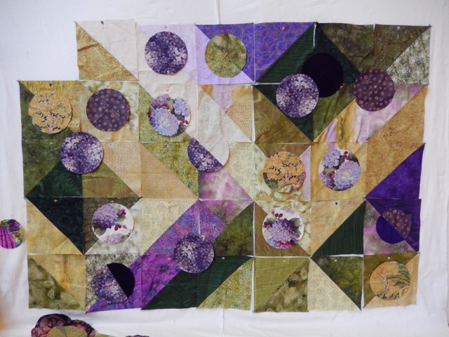 It was good to be able to take home the background and play with the pieces a bit more for the two weeks until the second day. Lorna demonstrated setting in the quarter and whole circles on the first day and we finalized the placement and set in our circles on the second day.