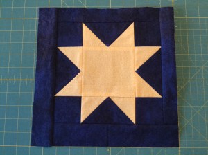 The December Block of the Month is a star. I have seen it called a Sawtooth Star and a Variable Star. It is now on our website where it can be found through a link on the Block of the Month page. You can choose to make the star in any light to intense yellow and any medium to dark blue and bring it to the January meeting for the draw. Have fun!