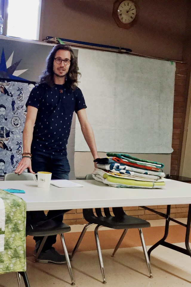 Nicholas Turcan was our March speaker. He is multi-talented – even a professional baker – who has embraced quilting, and does much of the amazing quilting of the sample quilts at The Cloth Shop on Granville Island in Vancouver, BC.