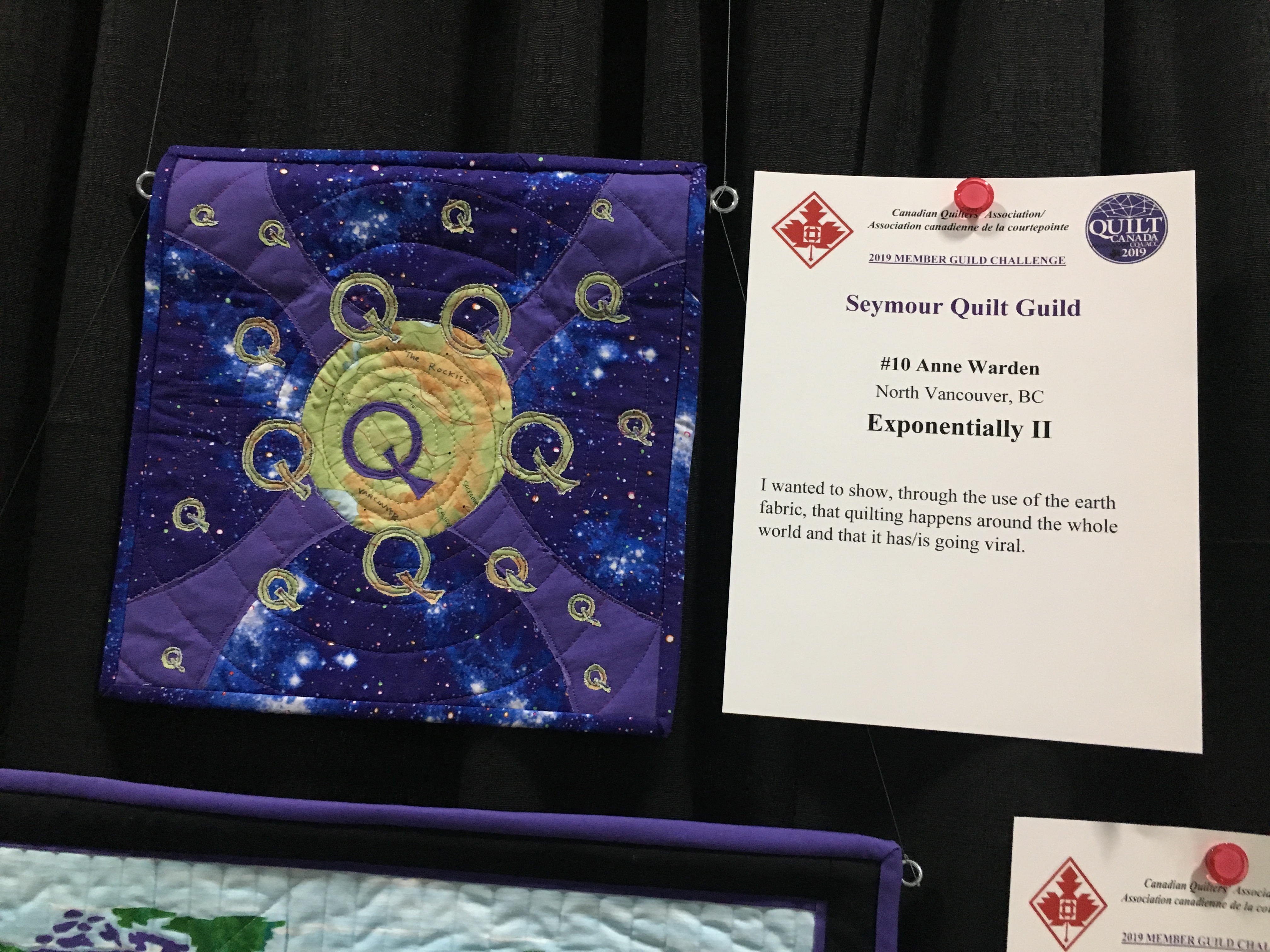 Quilt Canada in Ottawa lasted four days. There were several quilt shows, workshops, lectures, demonstrations, and an extensive merchant mall. Barbara M and Marilyn C attended from Seymour Guild.