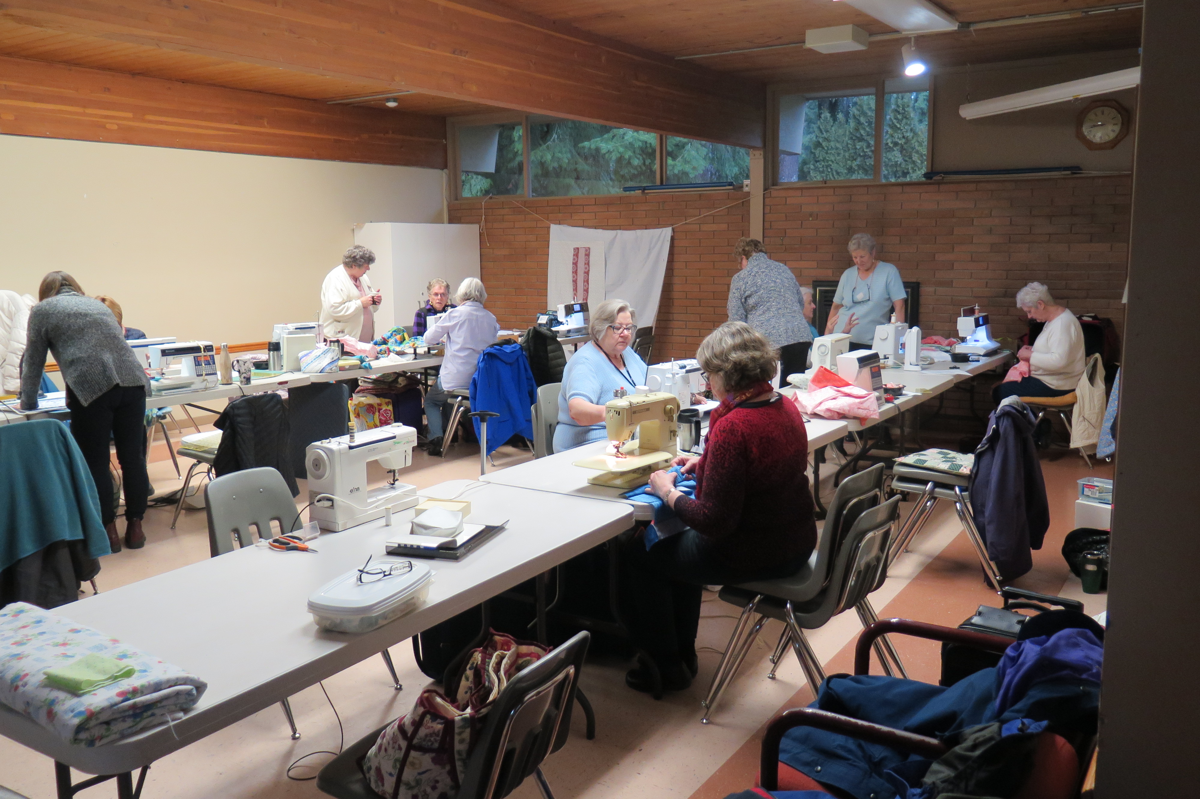 Our Community Quilt Day on January 29 was attended by over twenty members. On a dark and rainy day, the church hall was a warm and friendly place to hang out and sew together.