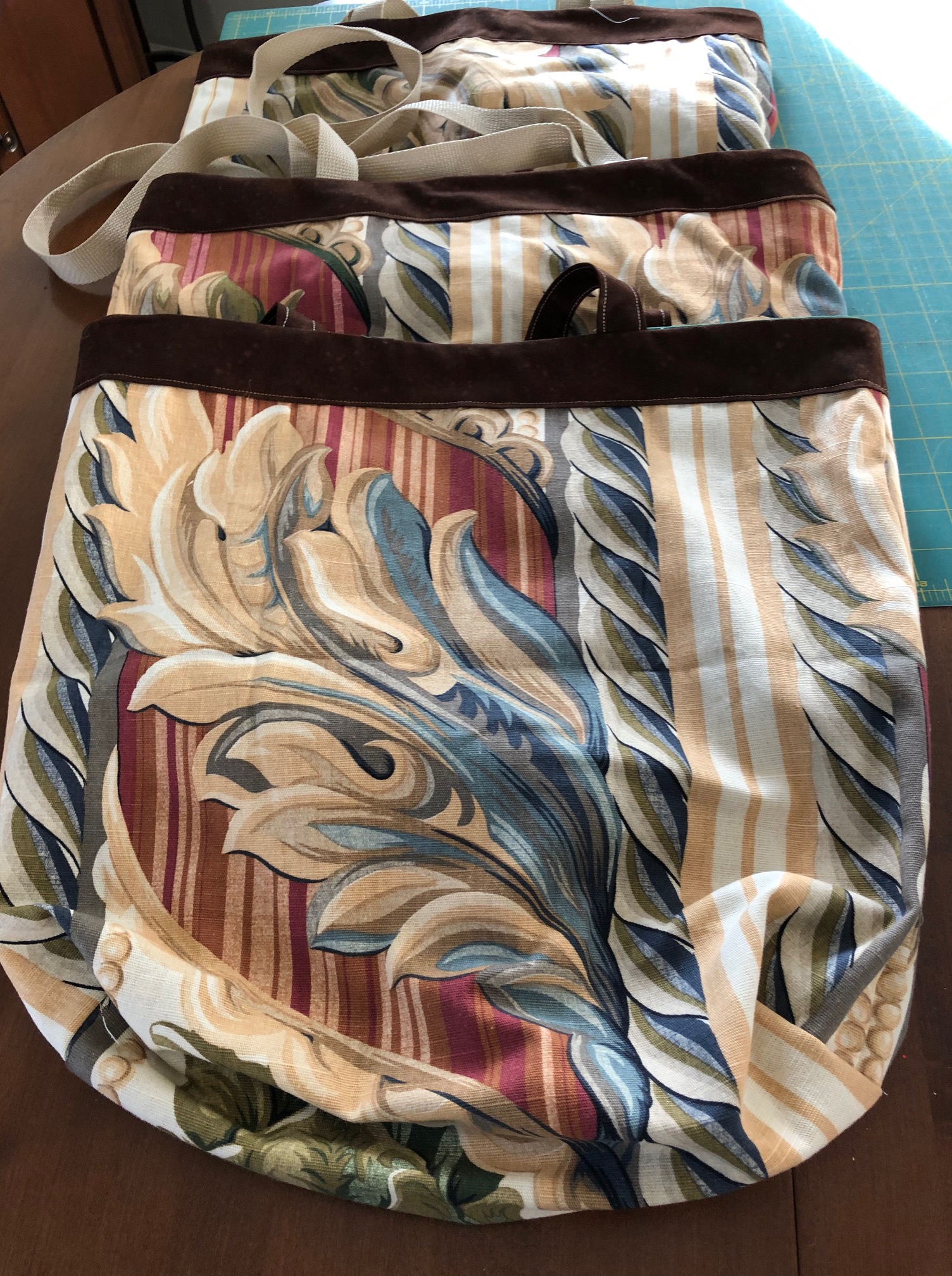 Chris arrived with her donation of lovely pillowcases and bags that had kept her busy at her machine on recent snow days.
