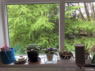 From Anne R … This is the scene from the window of my sewing room. Over the past six weeks it has gone from being leafless to this glorious shade of green. The almond and cherry trees too are lovely as we walk along along Frederick Road in Lynn Valley.