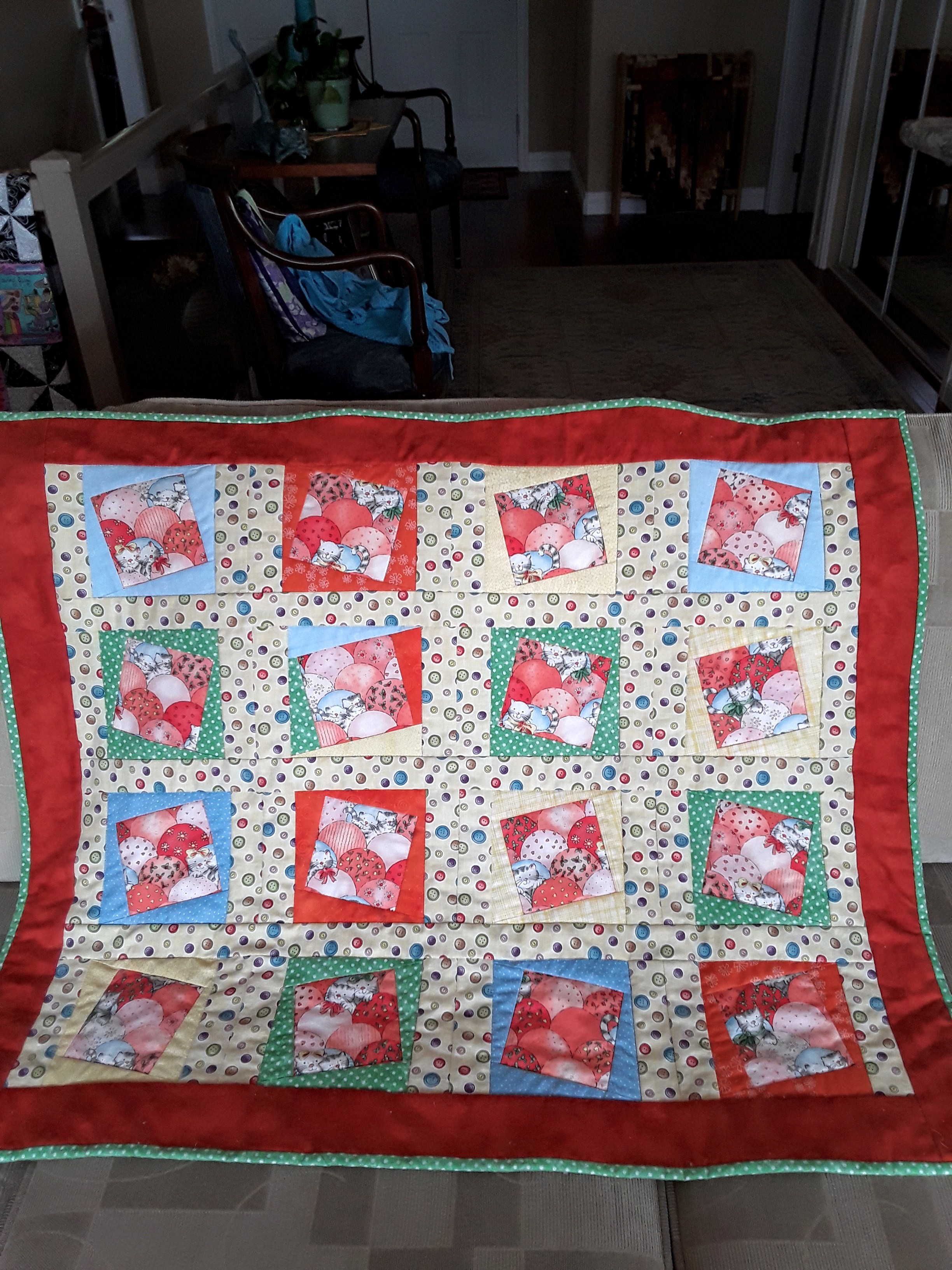 - Stick to sewing projects that do not require accuracy from oneself …. thus the boring cat picture …