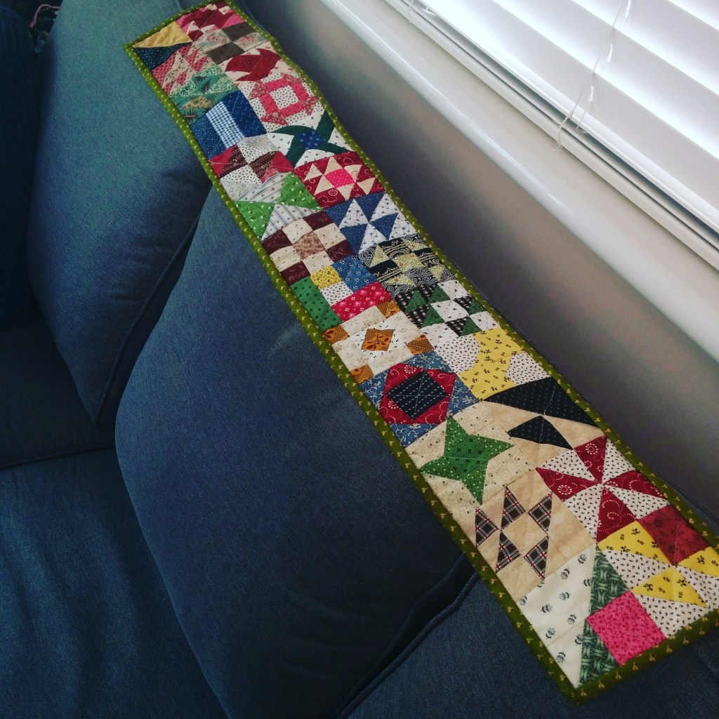 This is a small runner I made from my Temecula Quilt Co. Stay at Home Quilt Along blocks …