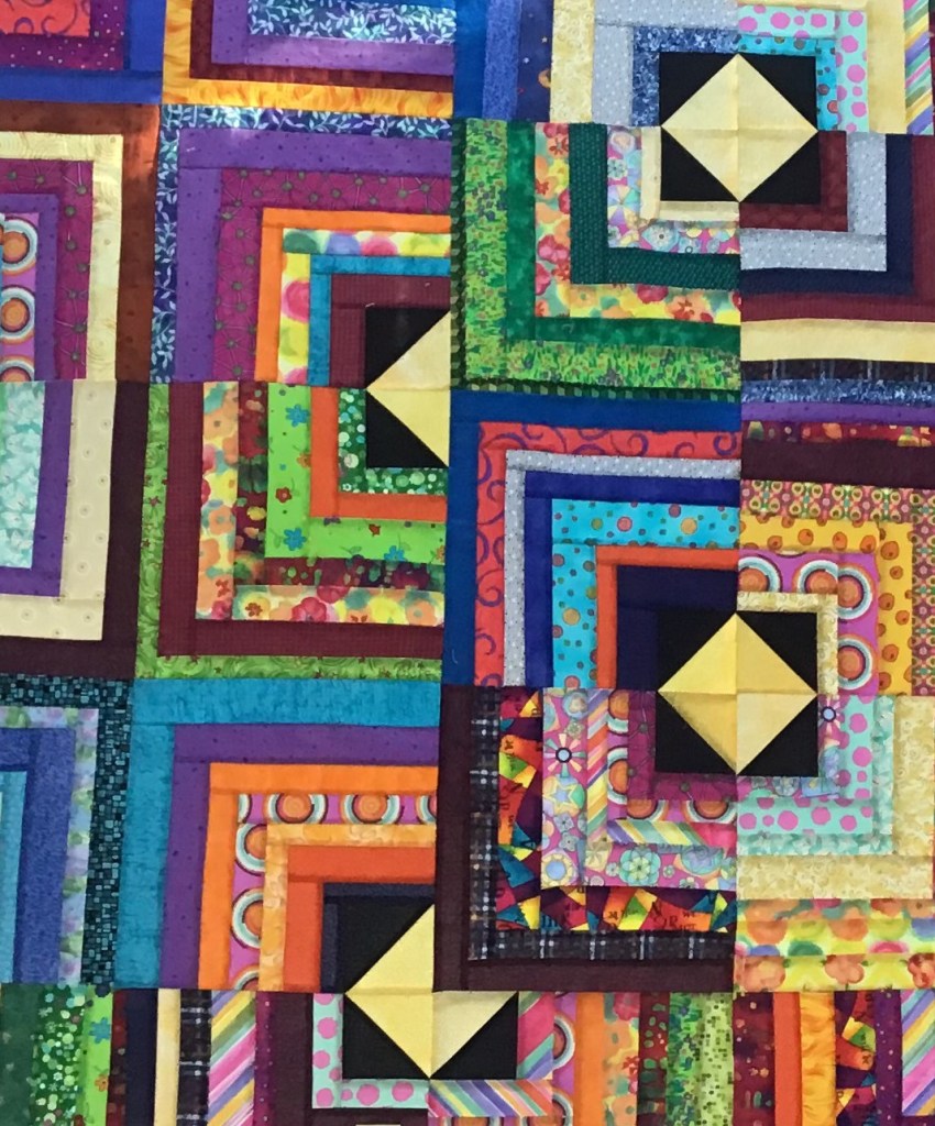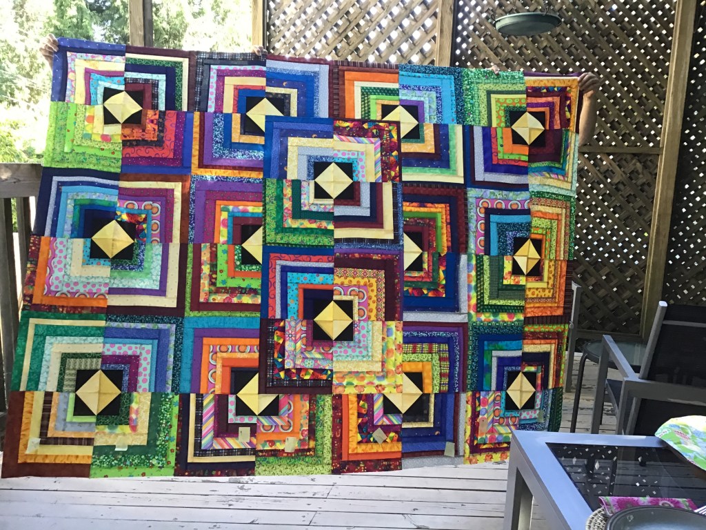 I will call this quilt Pandemic Pandemonium/COVID Cacophony. Picture shows quilt on it’s side.
