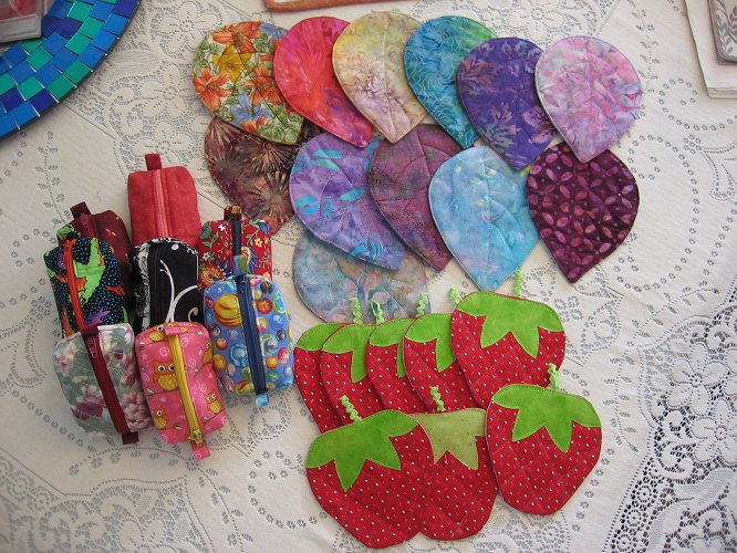 The strawberry and quilted leaf coasters are from Diaryofaquilter.com.