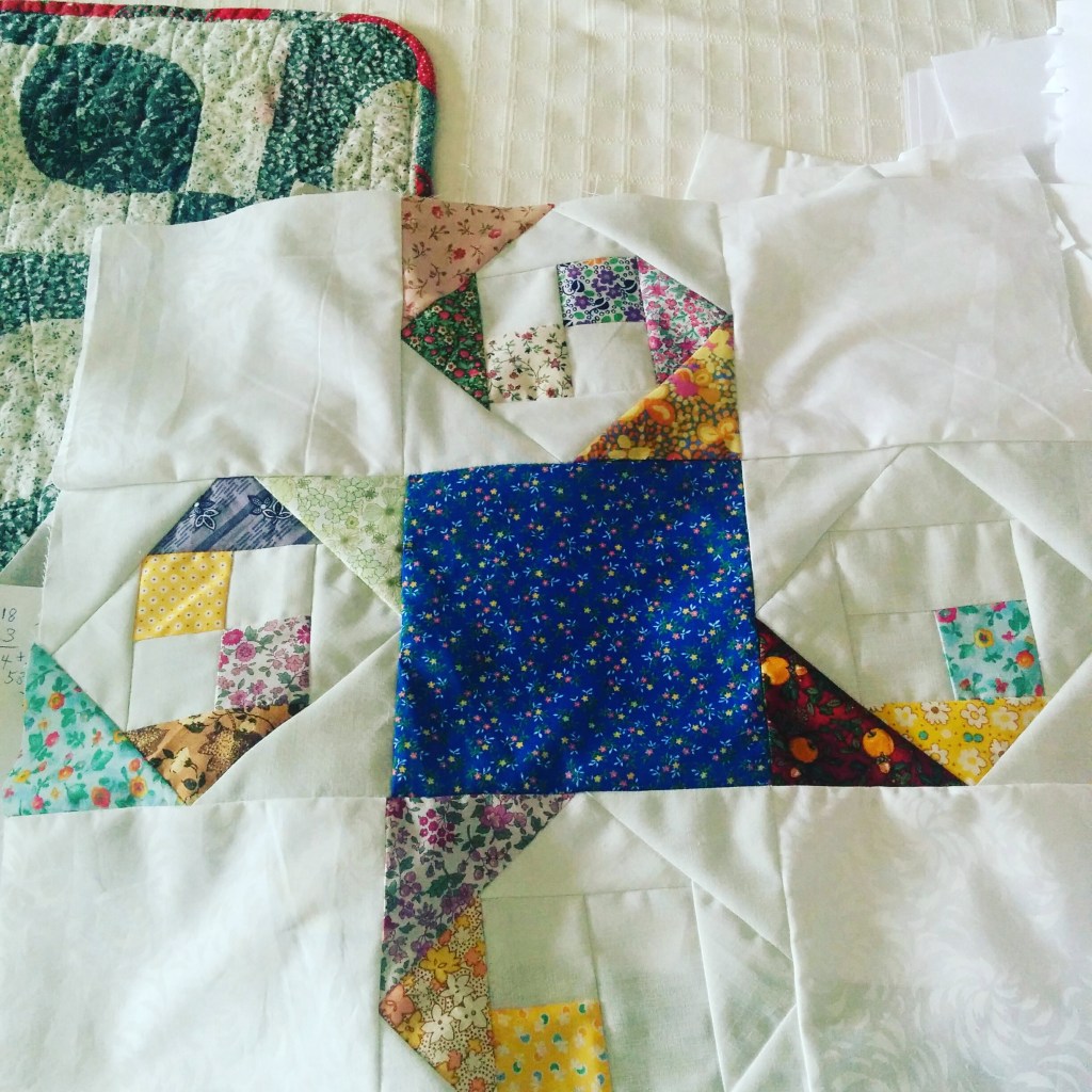 … I was impressed with Esther’s Snail Trails quilt. So here is my first snail trail block.
