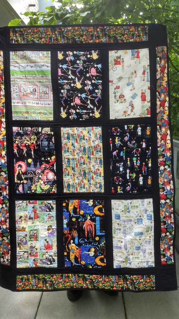 From Marianne … This is a small lap-sized quilt, made from leftover blocks. This will go to community quilts.