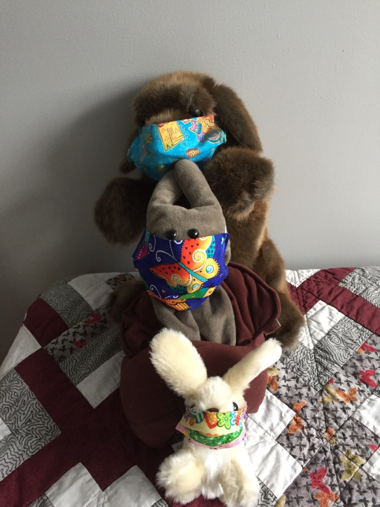 And then I made masks for these stuffed animals. My daughter uses them in her kindergarten class.