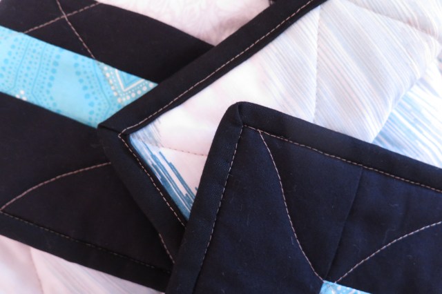 I tried out a technique that was new to me – using machine stitching for the whole binding process. After figuring out the best way to pin and tacking the mitred corners on the back, the stitching went pretty well and I would try this method again.