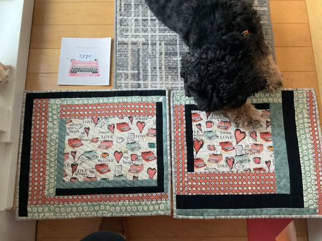 I KNEW I had typewriter fabric in my stash! Got home from the store, found it immediately and made these two placemats for her.