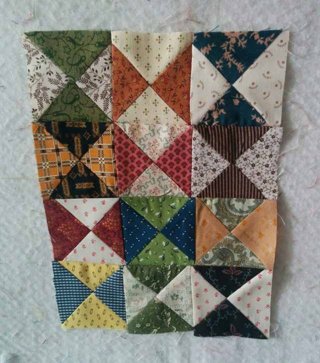 I am presently working on the hourglass 2-1/2 inch blocks. The quilt contains 396 of them. I just love vintage.