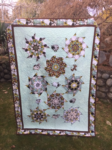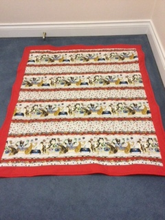 This quilt is 40″ x 47″ and is a panel that was given to me. I didn’t feel I could cut the panel apart, so just added a border.