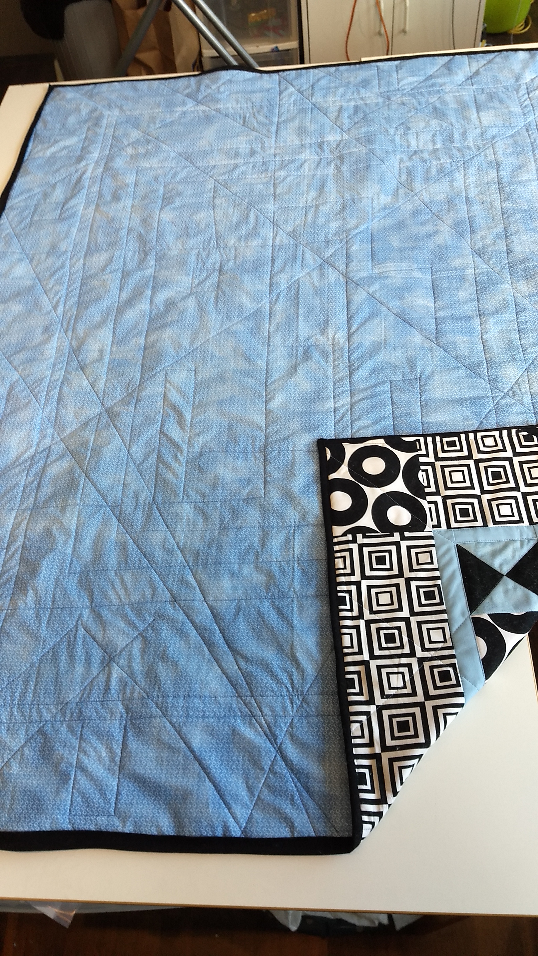 For the quilting, I just stitched the centre rectangle and then just went with whatever line appealed. One of the first times I’ve ever used a single fabric for the backing.