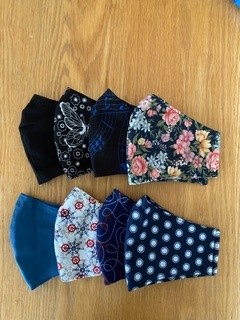 From Chris … Last Friday I received a package from daughter In Williams Lake, 5 Fat quarters for some masks & a book. First picture is the 5 plus 3 I added.