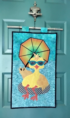 Okay, I’m rushing the summer season a bit with my new front door banner, but I couldn’t resist putting up my “Cool Chick” quilt. Original design, all from scraps.