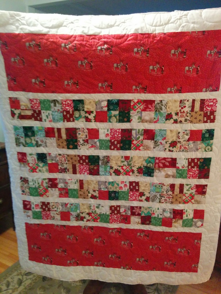 From Linda R … Two quilts back from my long arm quilter, Wendy Margerm. A Christmas quilt made for my Granddaughter …