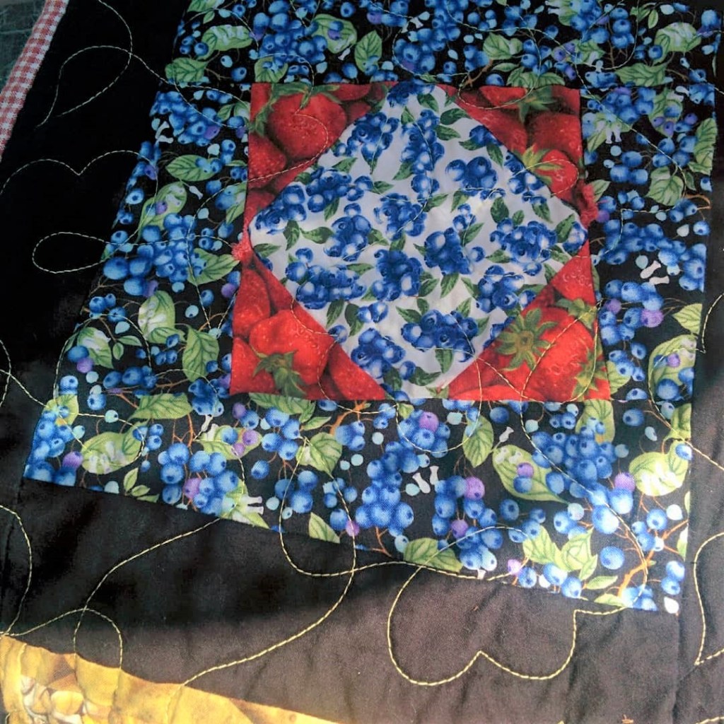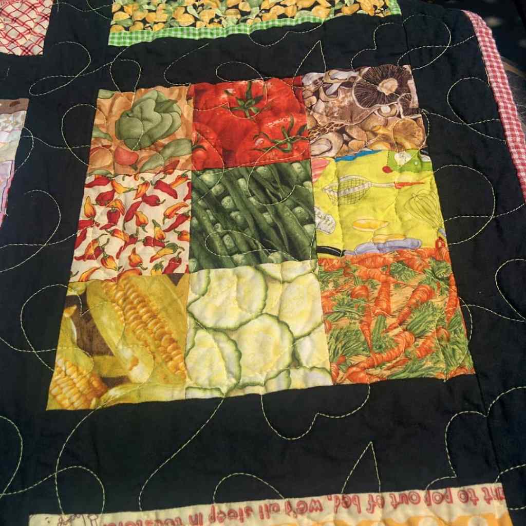 From Linda R … Pictures of my favorite picnic quilt. Using today (May 29),1st time this year.