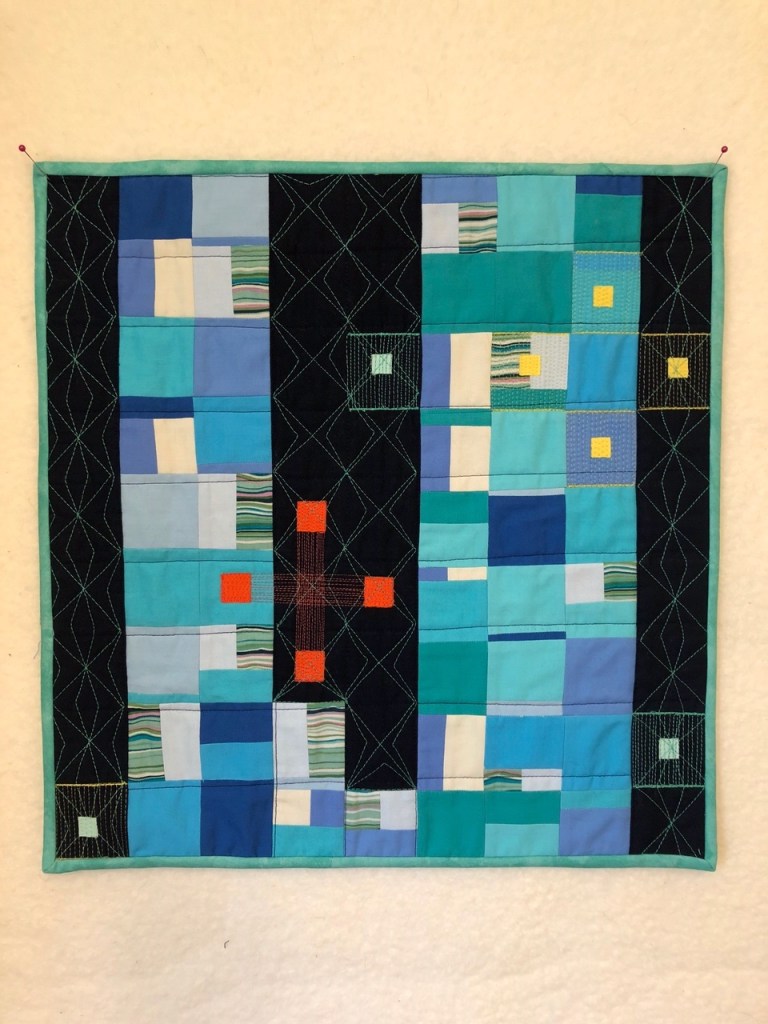 From Wendy W … Here is my completed the quilt from the Peter Byrnes workshop. It was a really good workshop! Thanks to Marilyn, Barb and Les for their unbelievable dedication to finding us such interesting workshops.