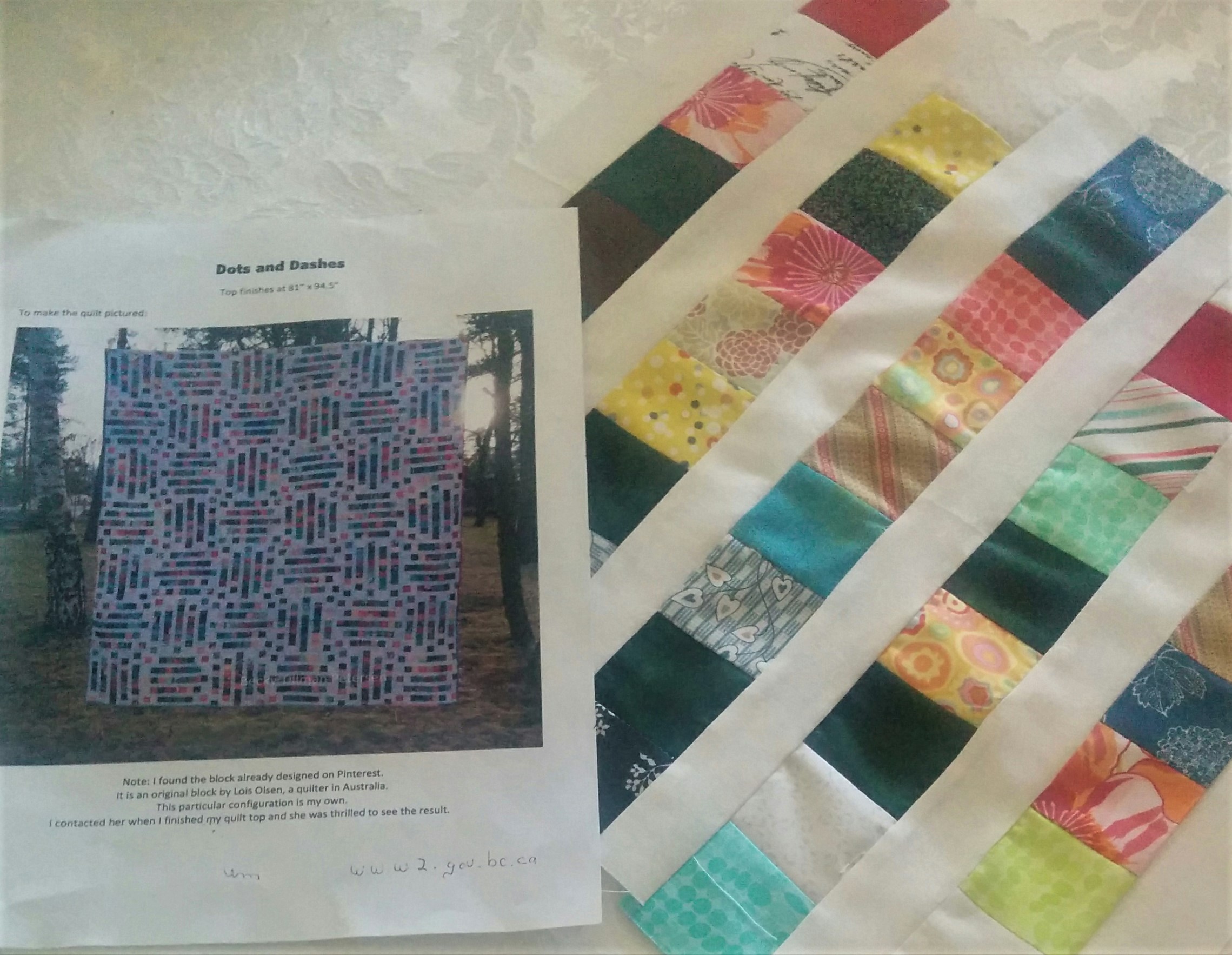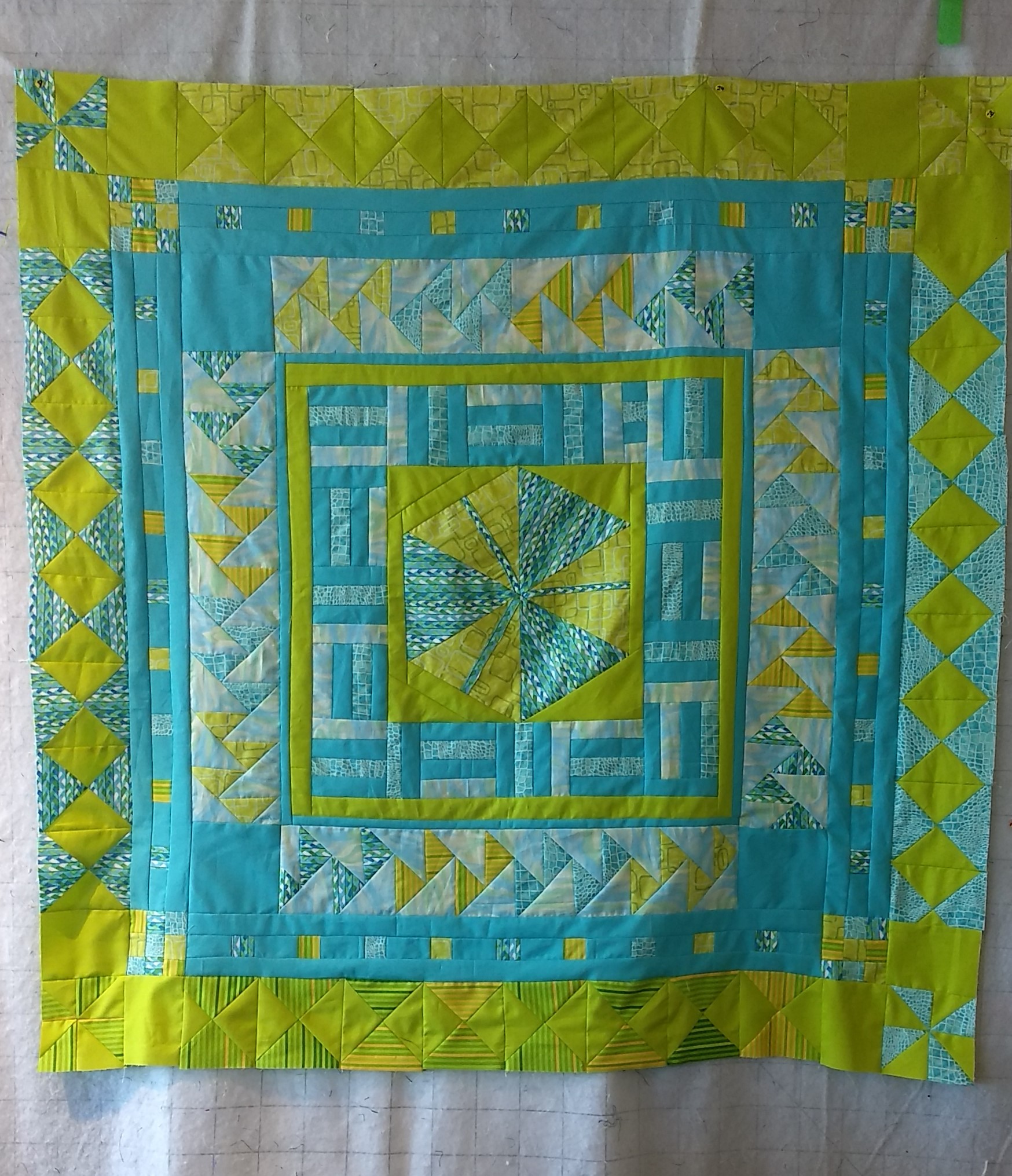 From Diane … Grow-a-Quilt … finally got the pinwheels on … all those half square triangles around the sides were thought to produce pinwheels – but when I went to assemble them they produced massive pinwheels. I only wanted small ones. I didn’t want to waste all the half squares but at least there’s a pinwheel in each corner.