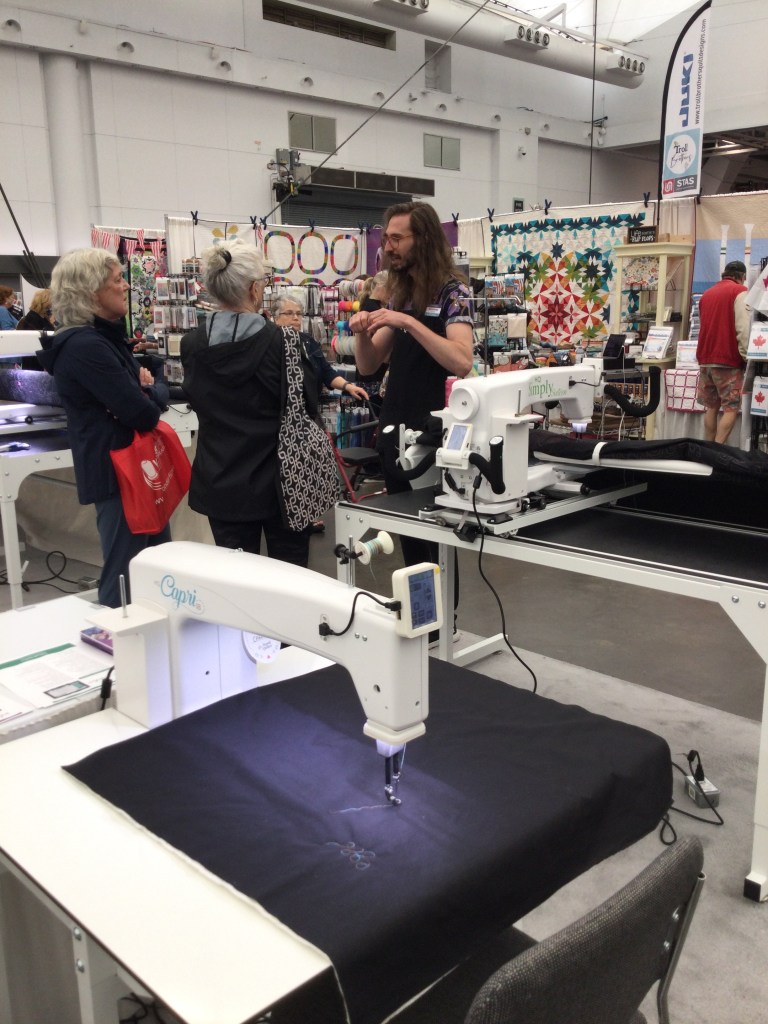 Quilt Canada was in three parts on the Convention Centre floor – The National Juried Show, the Merchant Mall and Demo Booth, and a number of other exhibits. On the second floor were workshops and lectures.