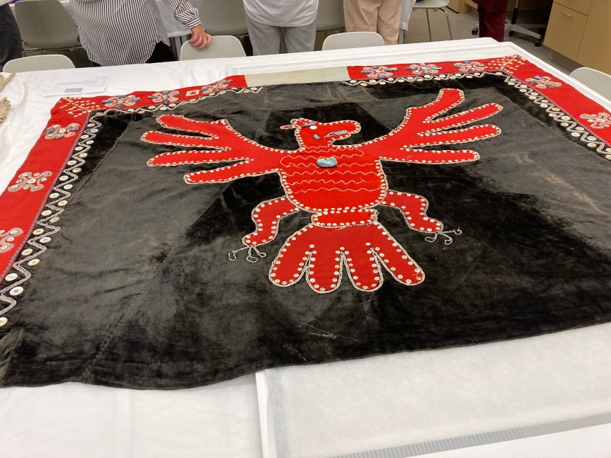 Some textiles, too fragile to be on public display, were retrieved from storage, and we were able to see them under the watchful eye of a conservator. No touching! No turning things over to see the back!