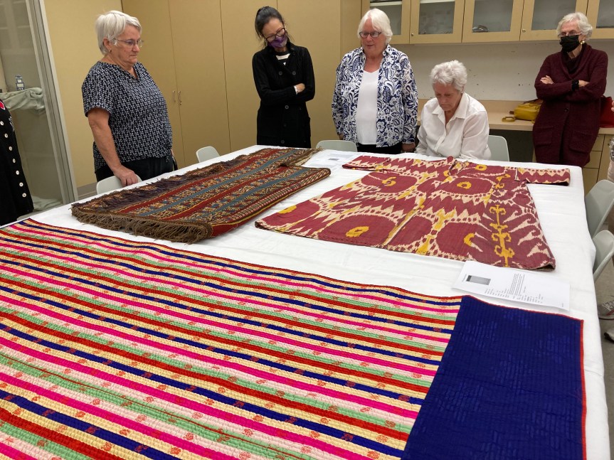 As quilters, we were interested in the materials, colours, designs, and construction of the pieces.