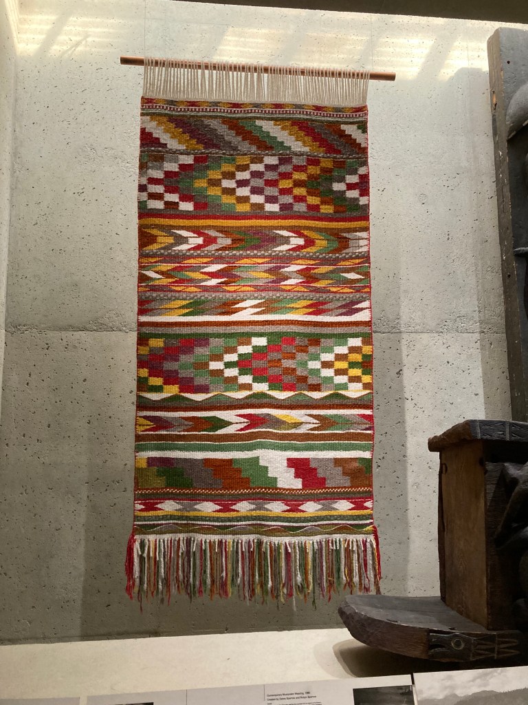 This weaving hangs near the entrance to the galleries and represents the continuing efforts by indigenous people to reclaim, celebrate, and preserve their culture.