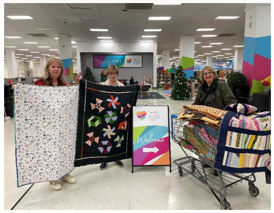 To pick up kits, fabric and batting, or to drop off a finished quilt, members can contact the Community Quilts Coordinator.
