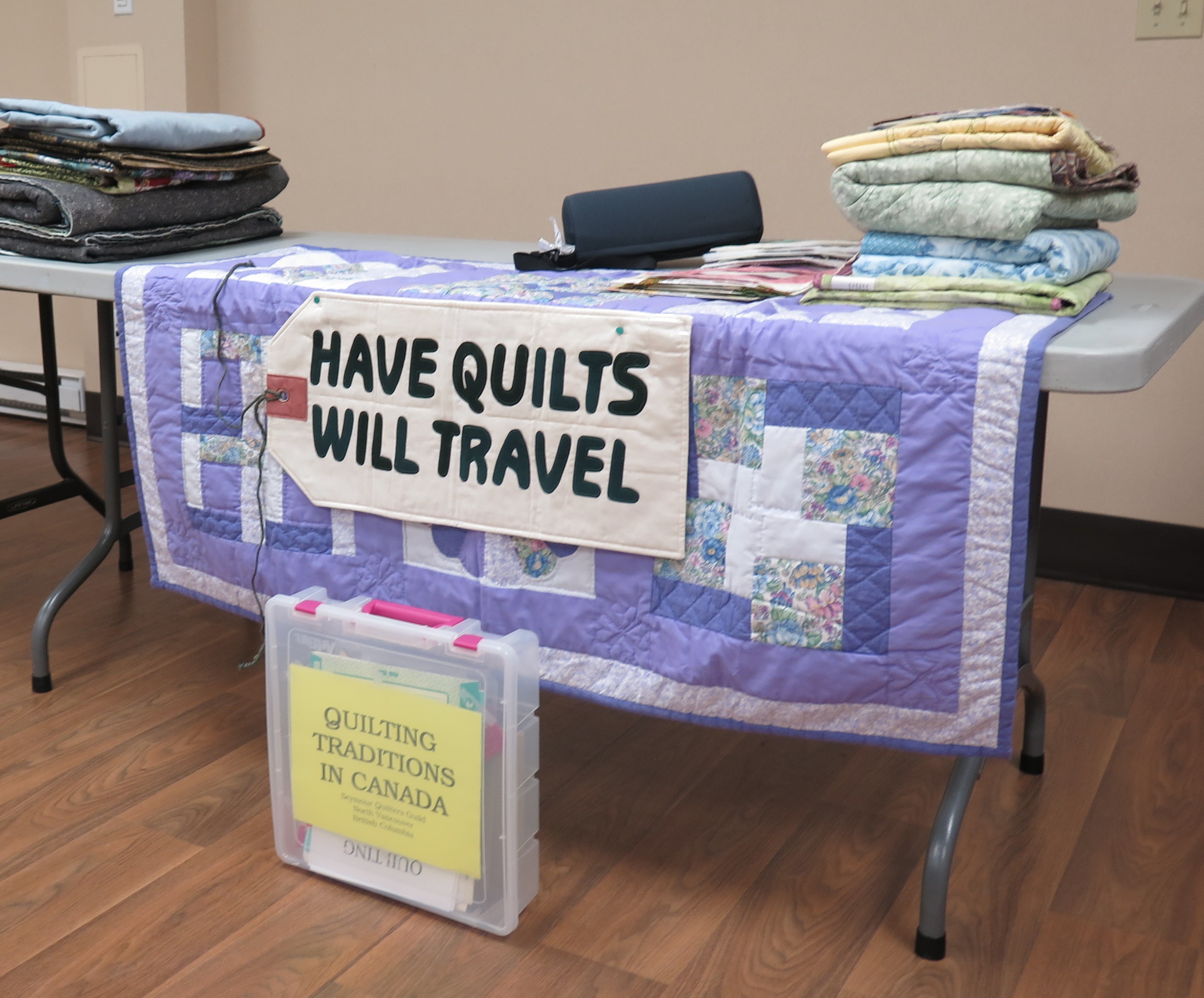 Over the years, Seymour Quilters Guild reached into the North Shore community with its “Have Quilts Will Travel” program. Guild members visited local venues with a presentation about the history of quilting and a trunk show of members’ quilts.