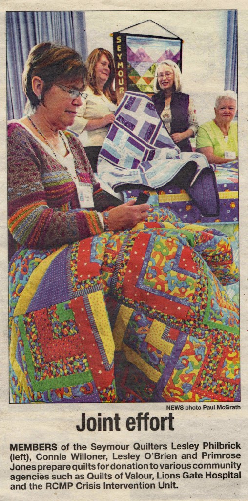 Above: The Guild’s Community Quilts Program was recognized in the North Shore News on May 15, 2011.