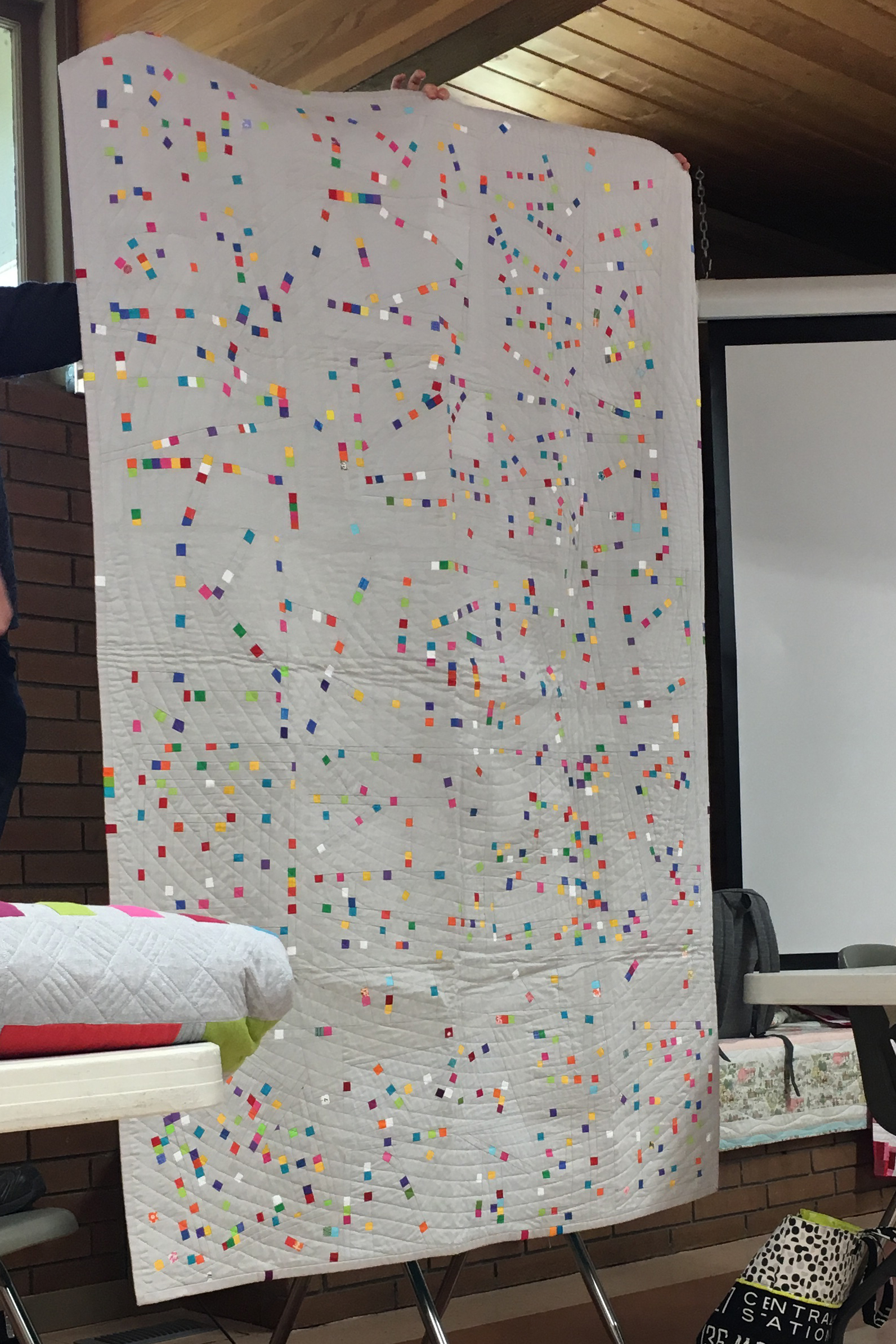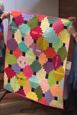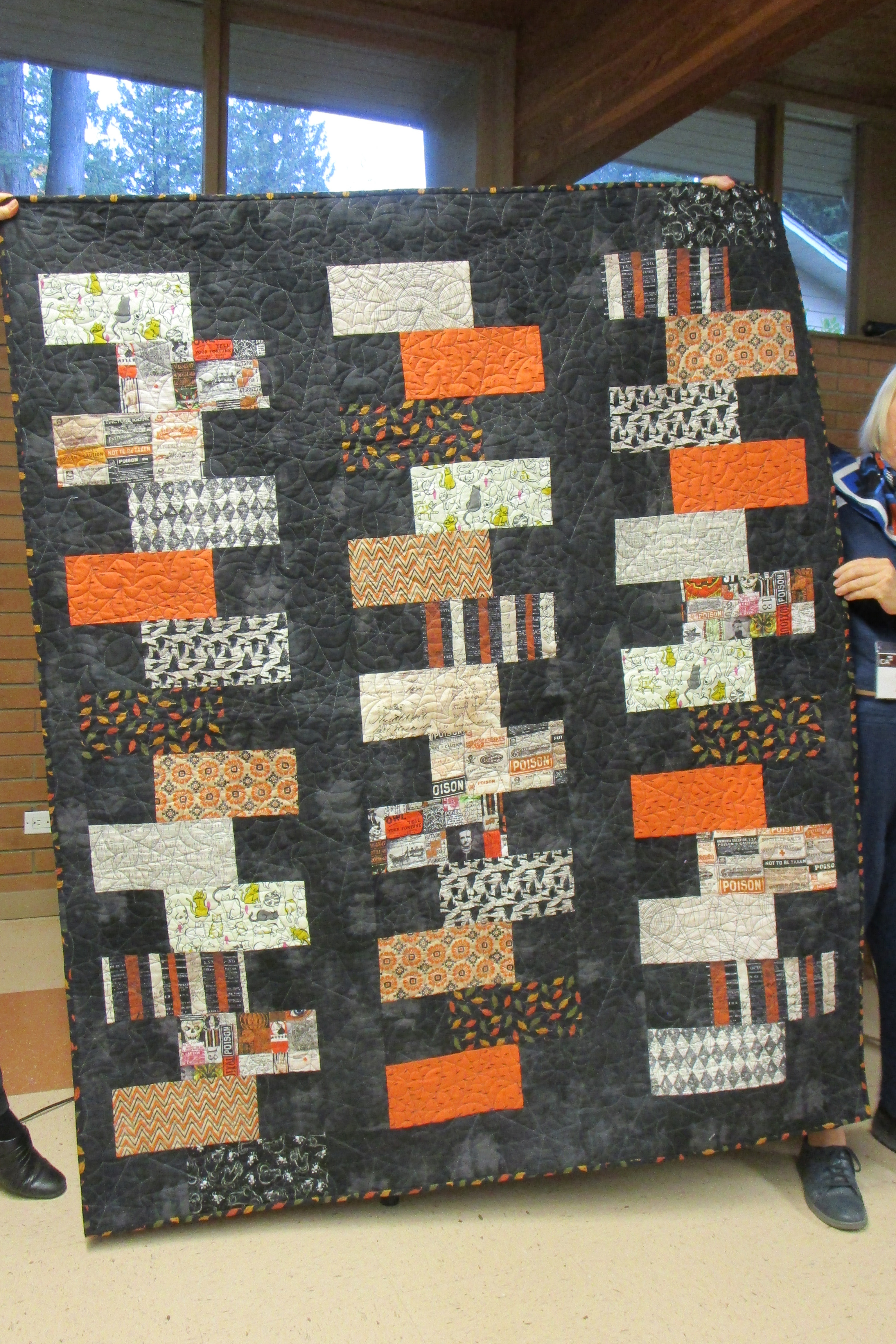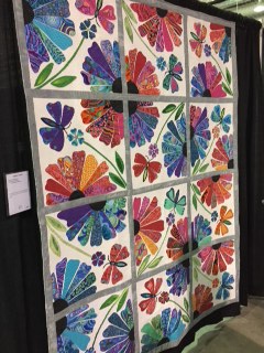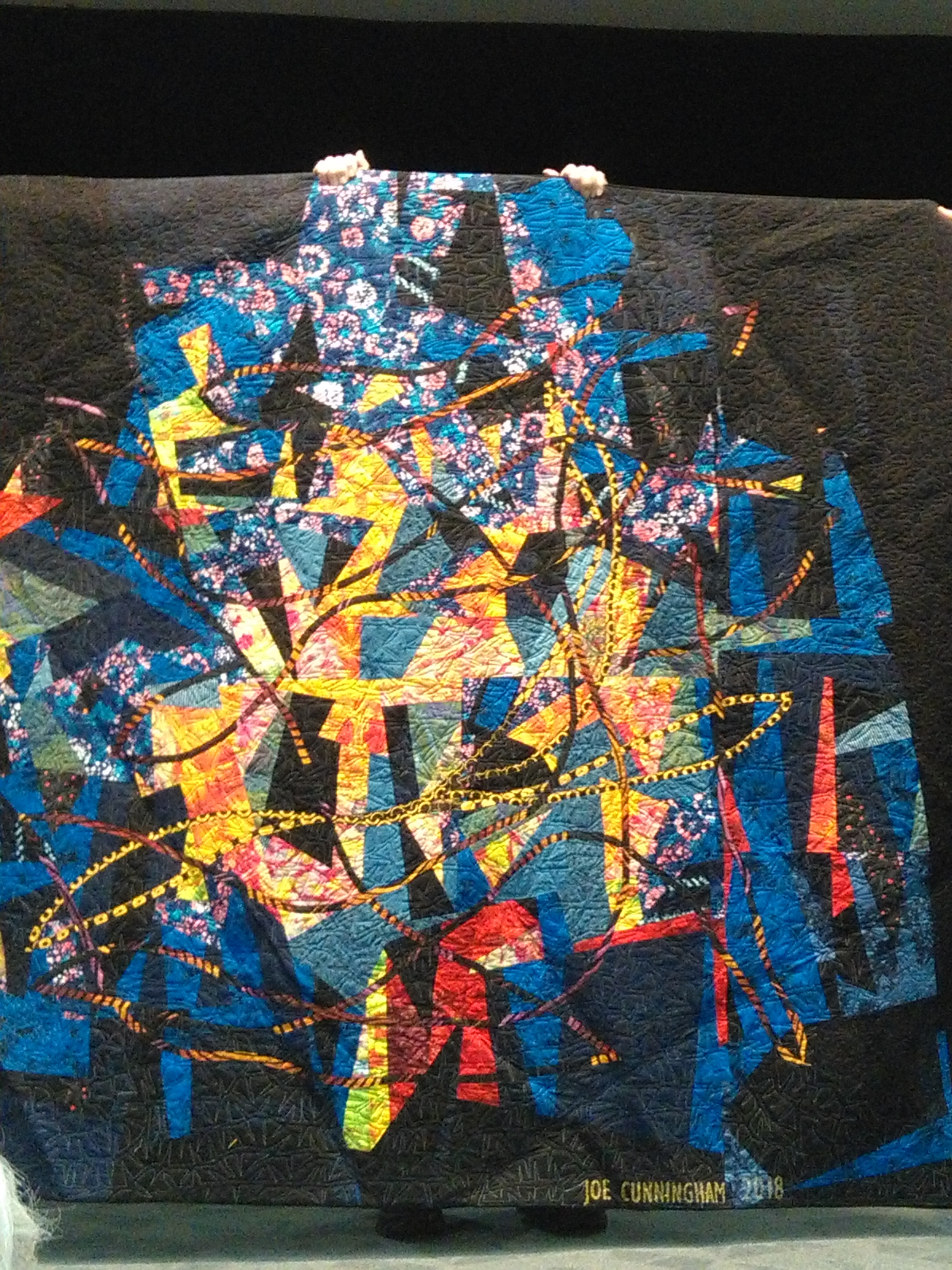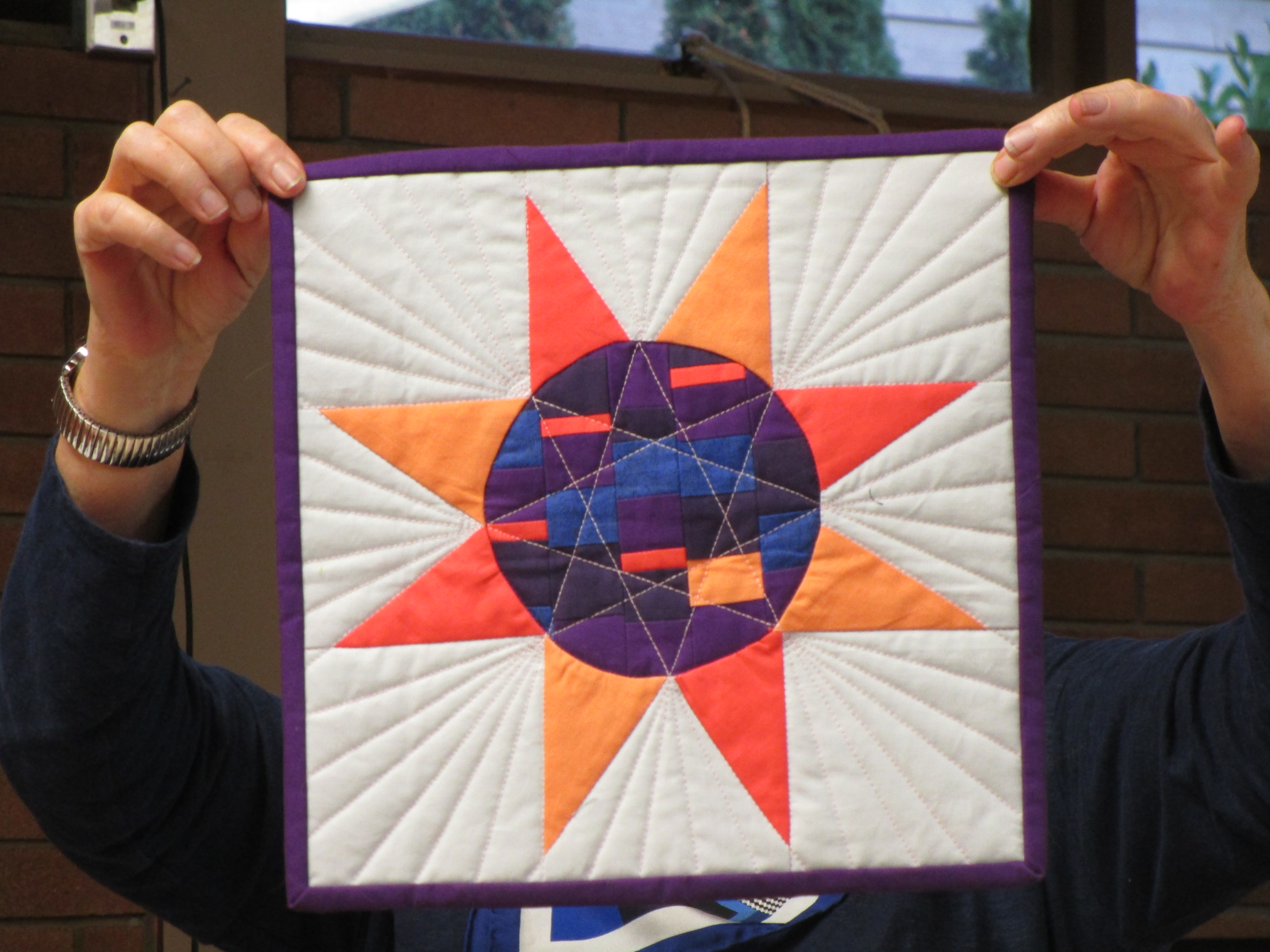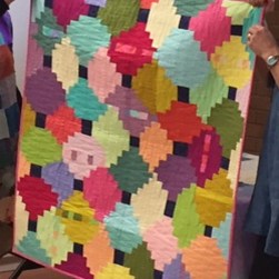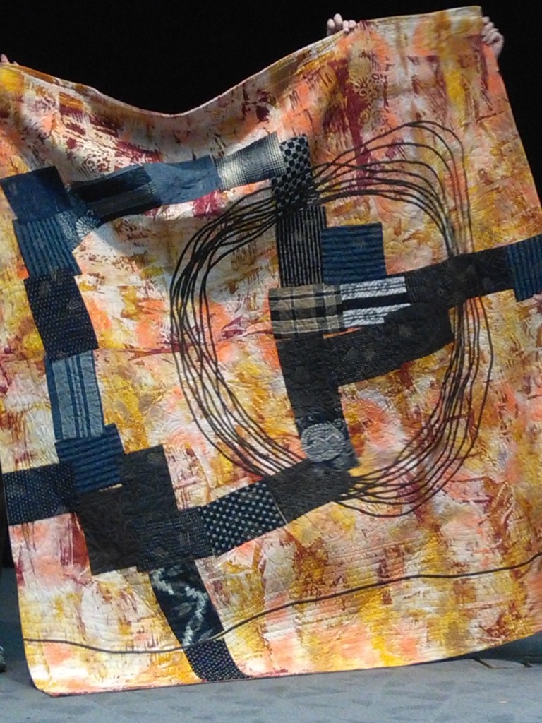 Wendy W sent along these pictures from the recent Boundary Bay Quilters’ Guild show in Tsawwassen, BC. The “hexi” quilt was made by Dougal Walker, who taught the “Wonky Star” workshop for our guild in 2018.