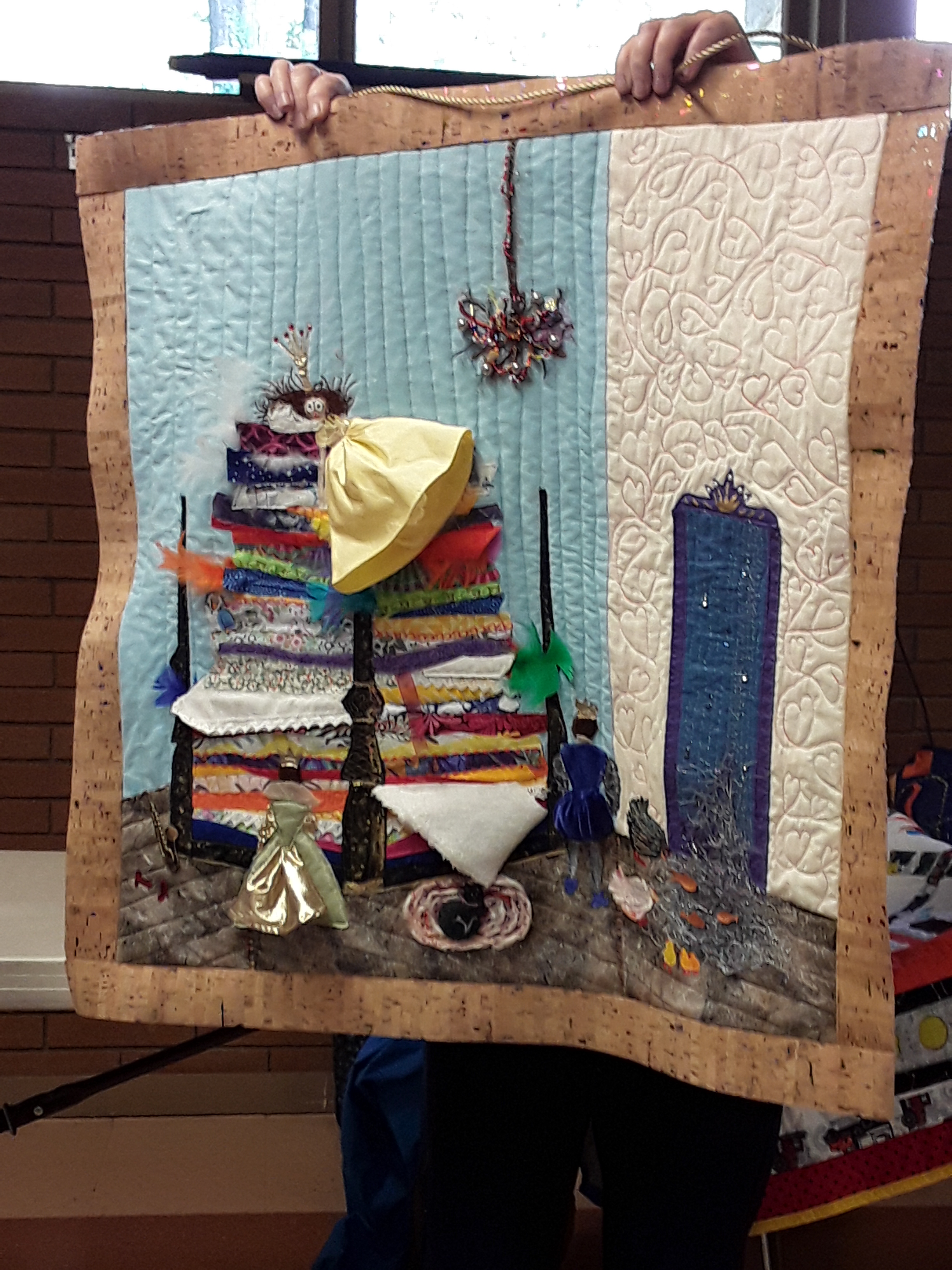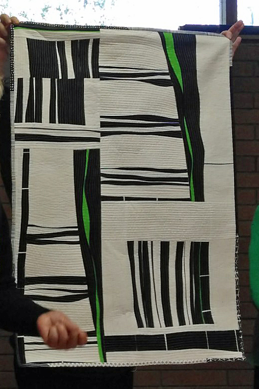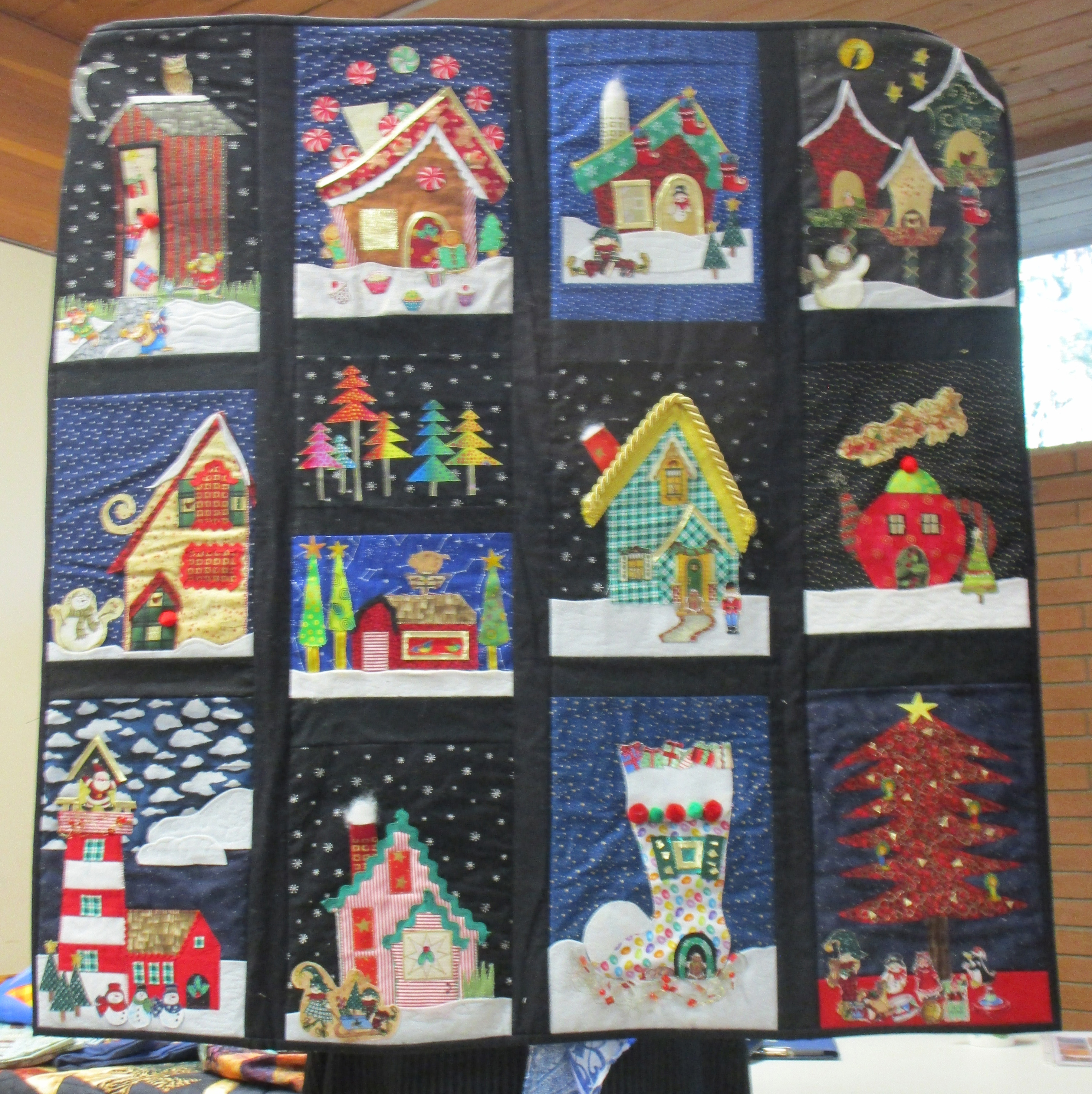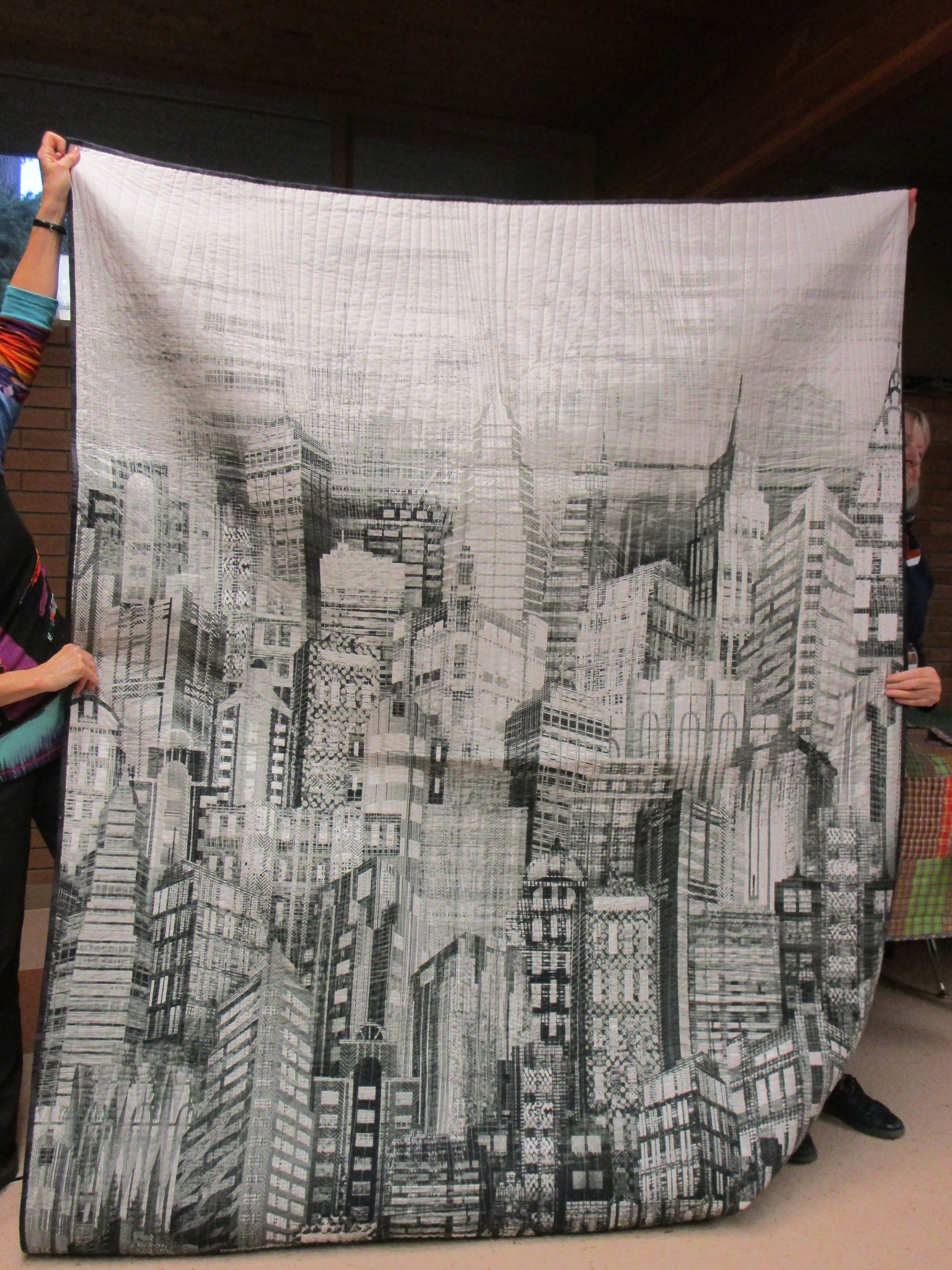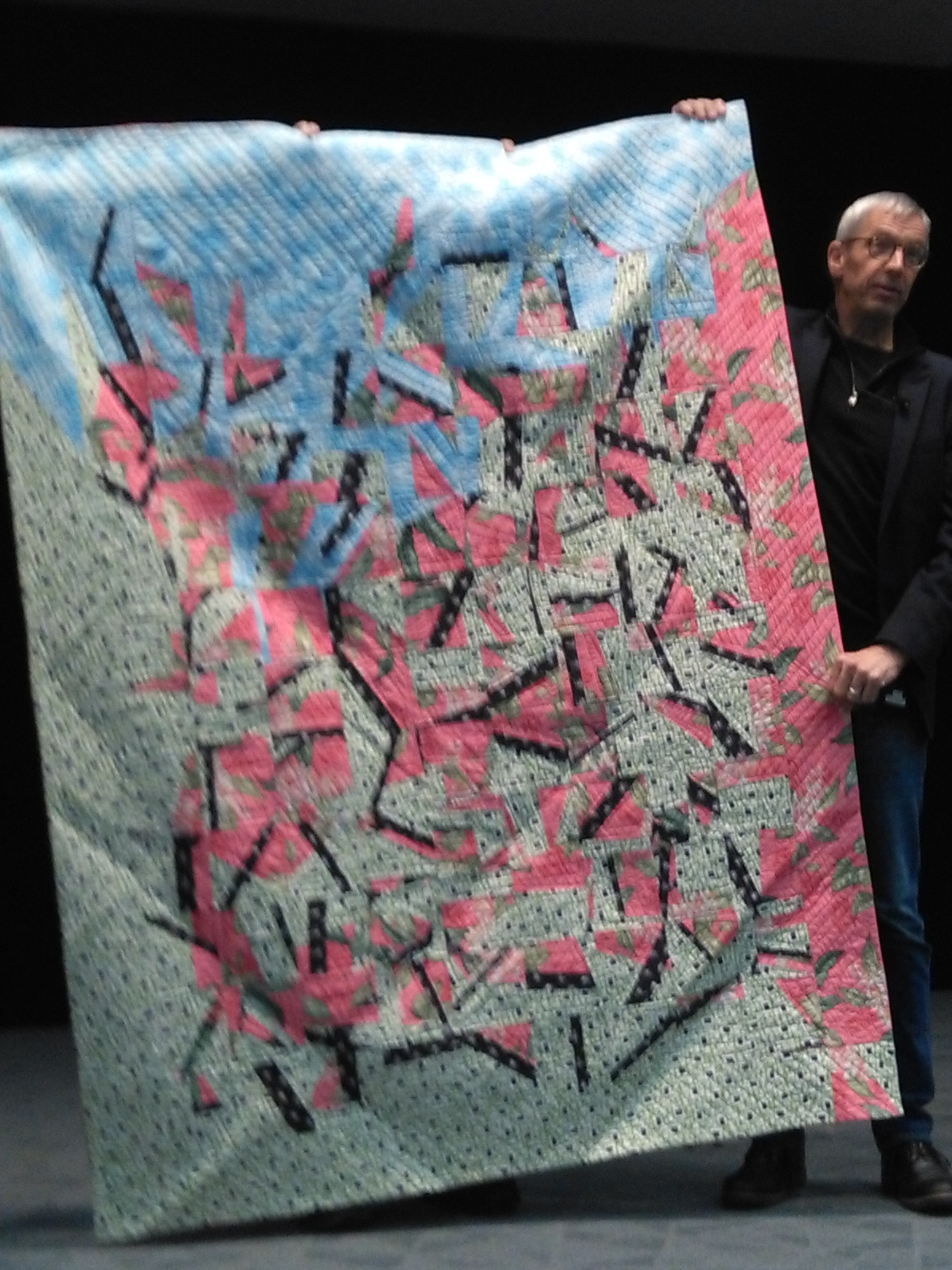 Wendy W sent along these pictures from the recent Boundary Bay Quilters’ Guild show in Tsawwassen, BC. The “hexi” quilt was made by Dougal Walker, who taught the “Wonky Star” workshop for our guild in 2018.