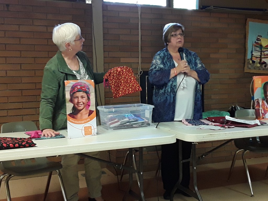 September 18, 2019 – Barbara Birt, Team Leader, Seymour North Vancouver, Days for Girls (right), spoke at our general meeting, assisted by Michelle.