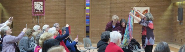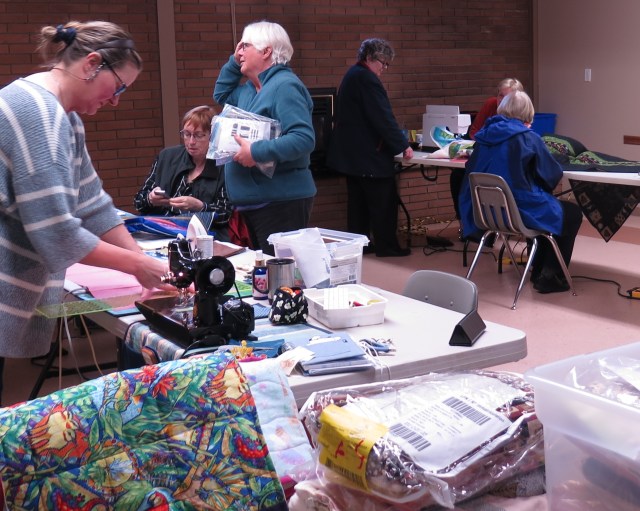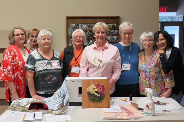Members Teaching Members: (left to right) Linda, Barb, Glenna, Marilyn, Maureen, Yoskyl, Les, Kori